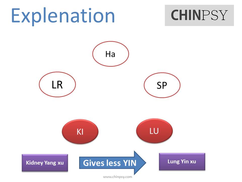 A Kidney yang xu leading to a Lung yin xu, Jinye xu, Xue xu and Qi xu.