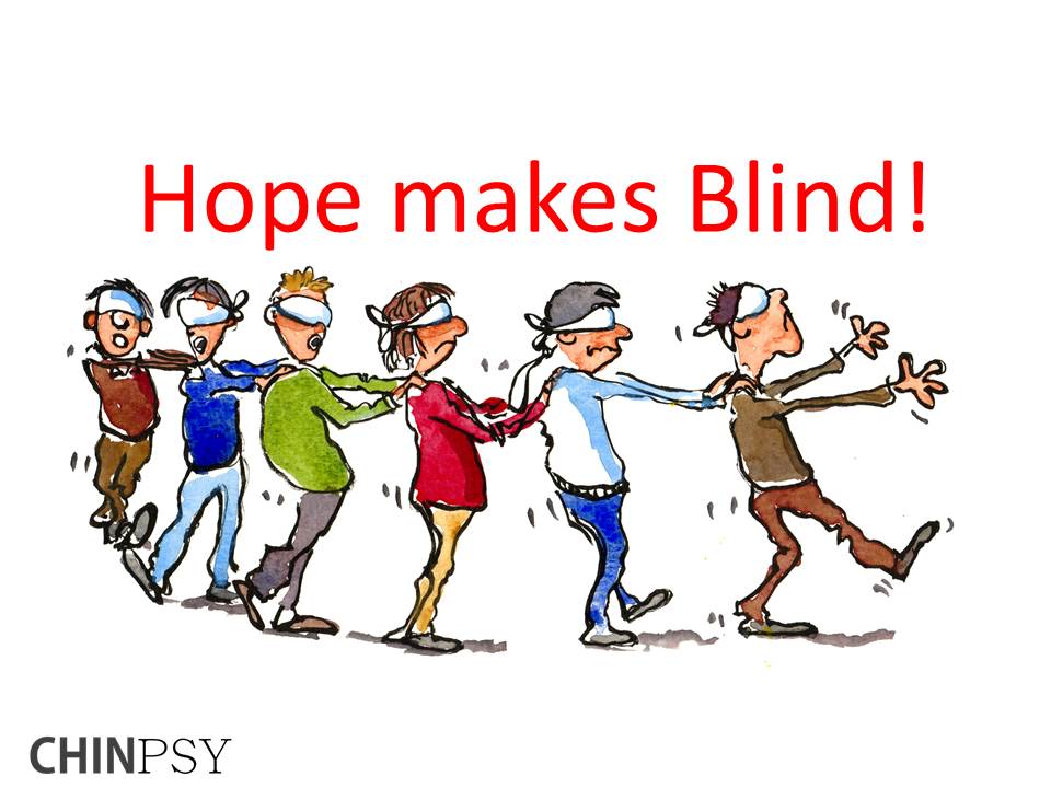 Hope is both an expectation and desire for a positive outcome in the future. When doing business you need to remember that hope and euphoria is the most dangerous feelings of them all. It makes you totally blind! Chinese psychology states that when Heart yang passes its 度量 Duliang (tolerance) you will get an intertransformation from Yang to Yin (forth yin/ yang law). Making your Shen become incompetente and irrational regarding a theme. In a way your eyes closes – you become 盲 Máng, Blind or short sighted. When you hope for a positive future change you might lose other good trades today (while waiting). That is why you should never ever hope for better days. Greed works in a similar way, but with a different motivation. You got what you got, act accordingly. The essence to the error is this: When for example a stock increases you might wait with selling it to make up for previous losses on the same stock. Suddenly you lose parts of the new increase because you were waiting to long. Remember, the market is illogically, cold, impersonal and impossible to calculate. Never hope for any future gain. Act according to what you know and what you have. The trap of hope is connected to the sensation of happiness when the market start going favorable for you; you start hoping, hope create euphoria and then you go blind. You feel your heart yang increase and thereby also the hope for even better times. The increased activity in Shen makes more hope you auto-generate. Little by little you move toward the danger zone – blinded – Mang.