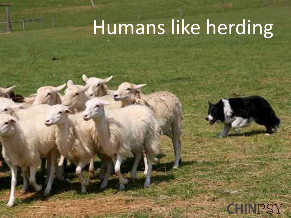 Humans are mammals and mammals tend to exhibit a strong group behavior, making us all a sort of group animals, depending on others to feel well and alive. Being a group animal makes us prone to herd and to group think. The herding instinct make us move around together in group, and it also makes us more likely to make the same decision. You tend to conform to the opinion of the others. A herding instinct is useful for survival during difficult times seen through the glasses of human evolution. Our modern society does not always favor people that copy others. Our place in evolution does not regard herding as an individual asset. Group mentality does exist, and we better accept it, find a way to understand its function and start to coexist with this aspect. The market follows the herd, and 创新 Chuàngxīn innovation starts outside the path of the herd. You need to understand the concept of herding and the depth of our group mentality; irrational as it might occur to you. Our predisposition to live in the mean and to do the same as others emerges from deep inside our congenital essence and Li. We tend to give our complete blessing and uncritical copy what others do, say, think and decides. Humans are pre-programmed for conformity; you live on a type of auto conform-mode. Exactly that is our challenge. In business we need to understand that when others buy or sell is not necessarily a good deal for you to follow. You need to stay clear from following others when doing business. To be blindly herded by others might lead straight to disaster. Chinese psychology considers the group mentality to be directly connected to our congenital essence, making our Shen trying to weigh aspects from the group as more valuable than individuals. What everybody else thinks and does will be perceive as more correct in Shen than what individuals think and do. Shen will give priority to plans with associated information from Zhi with a group signature, making you subconsciously confirmatory.