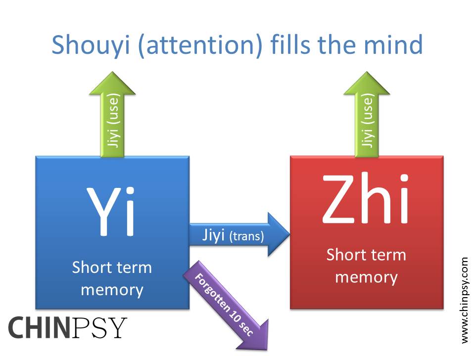 In Chinese medicine it is normal to associate the short-term memory to Yi and thereby Spleen zang. Chinese psychology states that the short term memory is not permanent, and passing of nature and thereby Yang. This momentary memory is of high importance for our survival, but the stored information degenerate quickly in importance as new information enters. The limitations and the system are regulated by congenital factors. If we look closely into Yi we will find a possible division in Wai (external) – and Nei (internal) parts. The Wai part of Yi is intimately related to Yang-Yang Yi or the super short-term memory and Yang Yi. The Nei part of Yi is related to both the Yang Yi and the Yin Yi. The Yang Yi is the connection between Yi and Hun, the highway of information into the mental system. The Yin Yi is the connection between Yi and Zhi, the channel for direct storing.